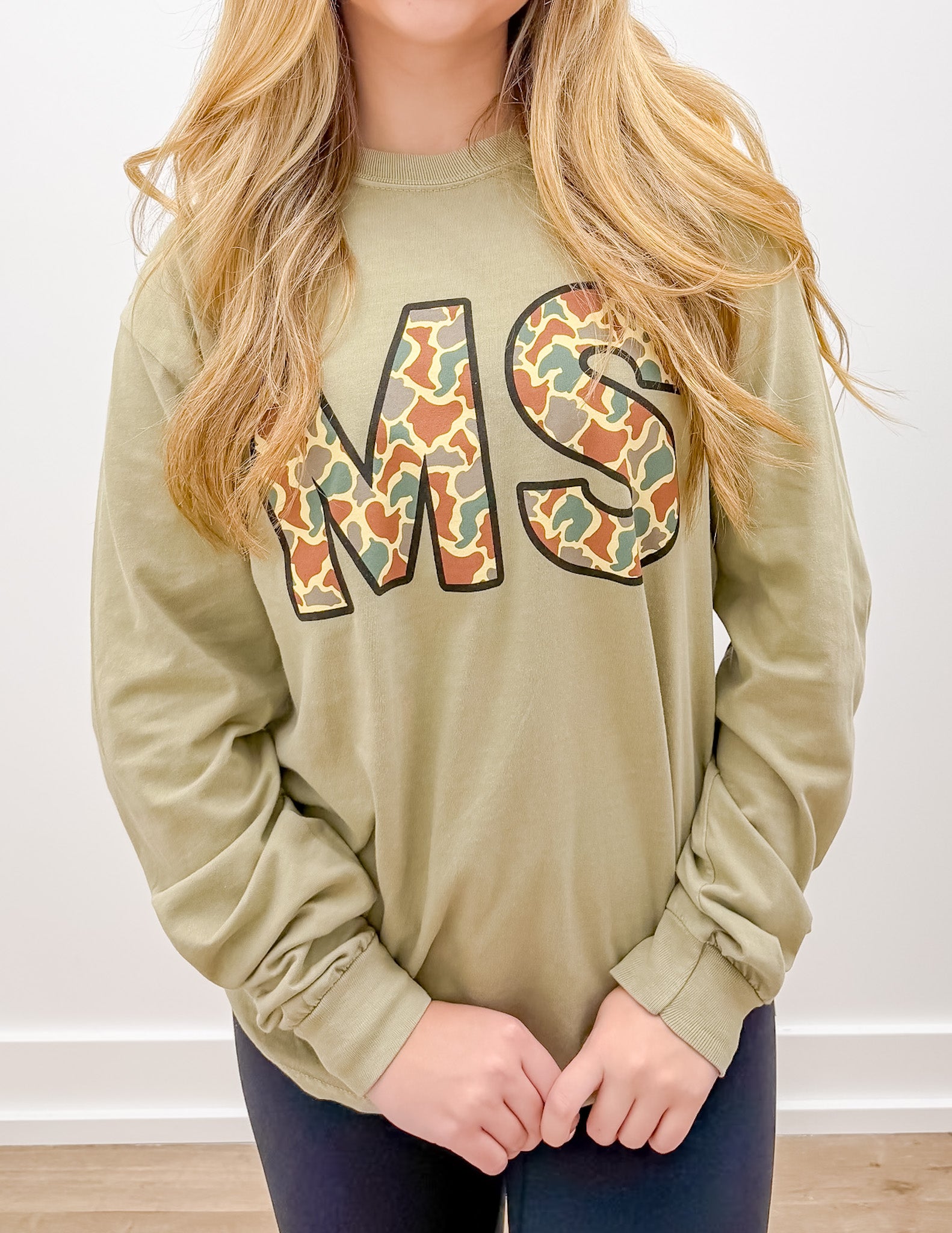 Addyson Nicole Company MS Camo Print LS Tee in Khaki