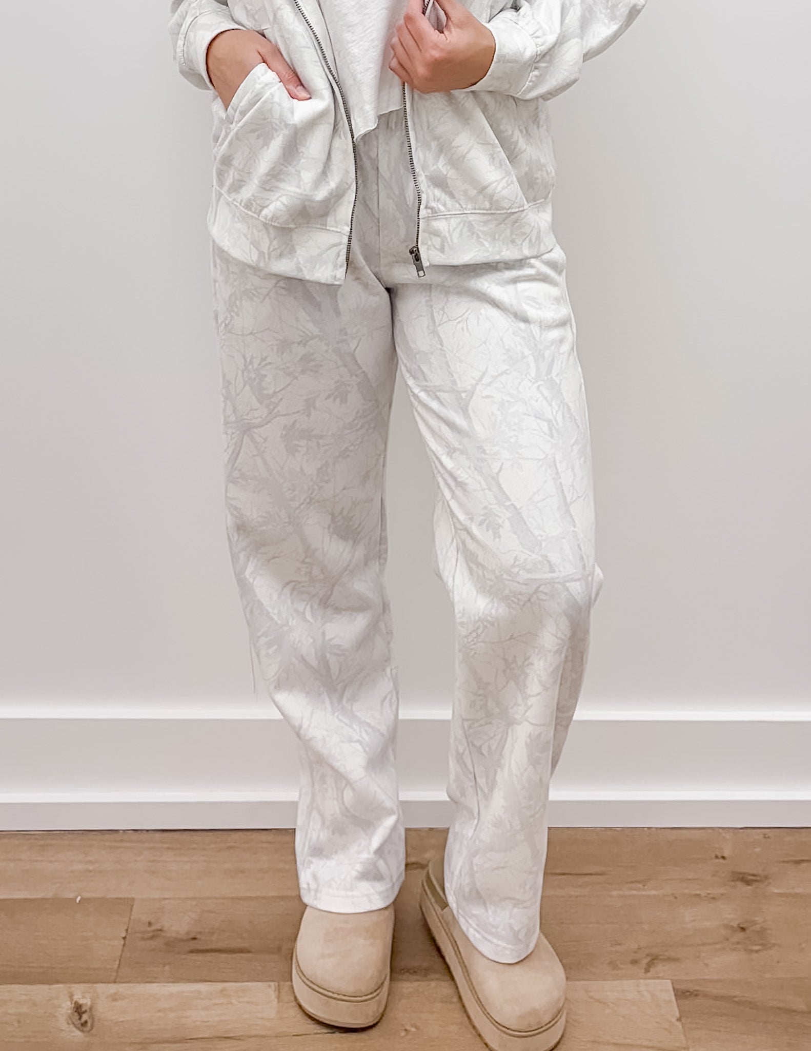 Getting My Story Straight Fleece Sweatpants in White Camo