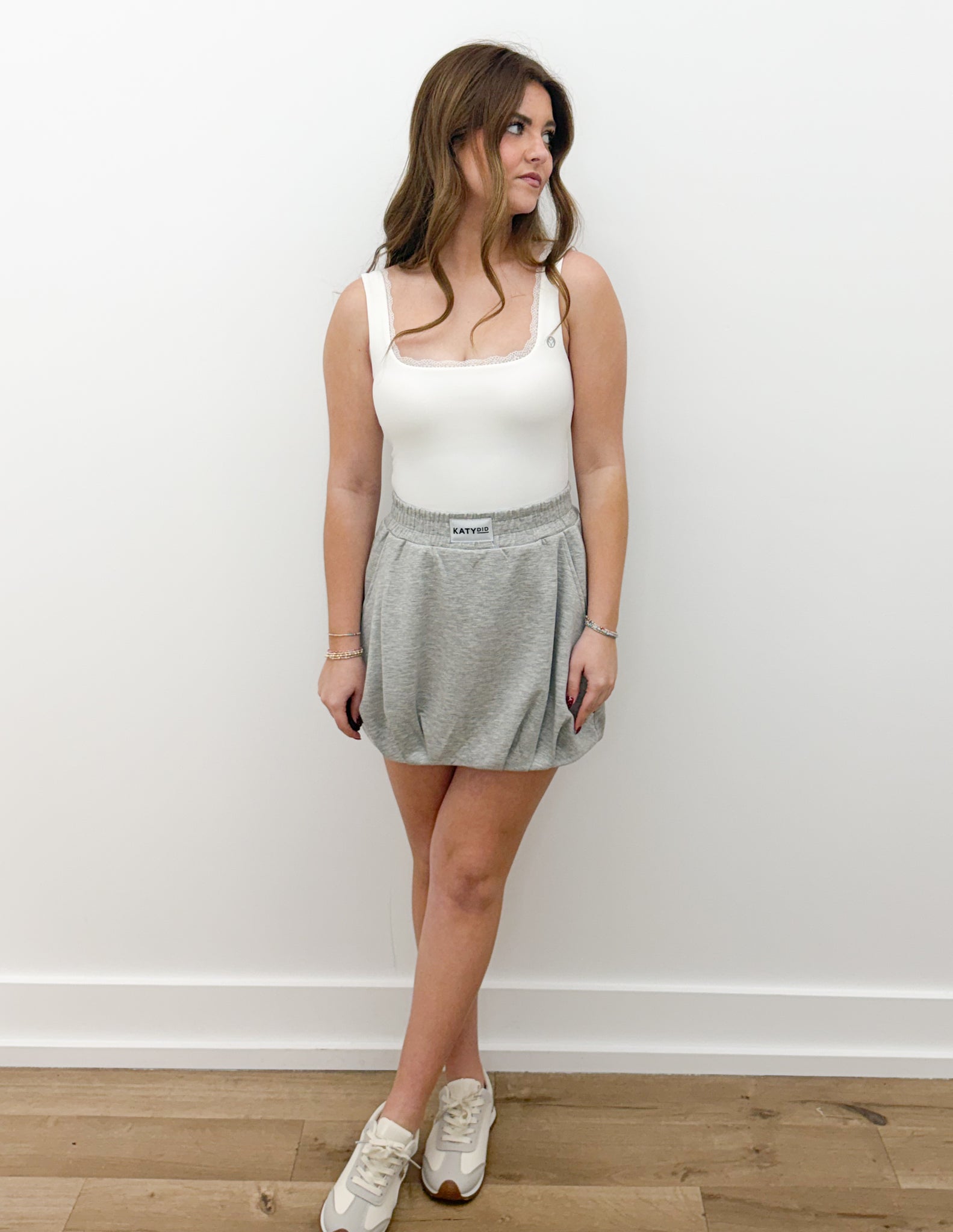 Excuse Me Scuba Bubble Mini Skirt in Gray