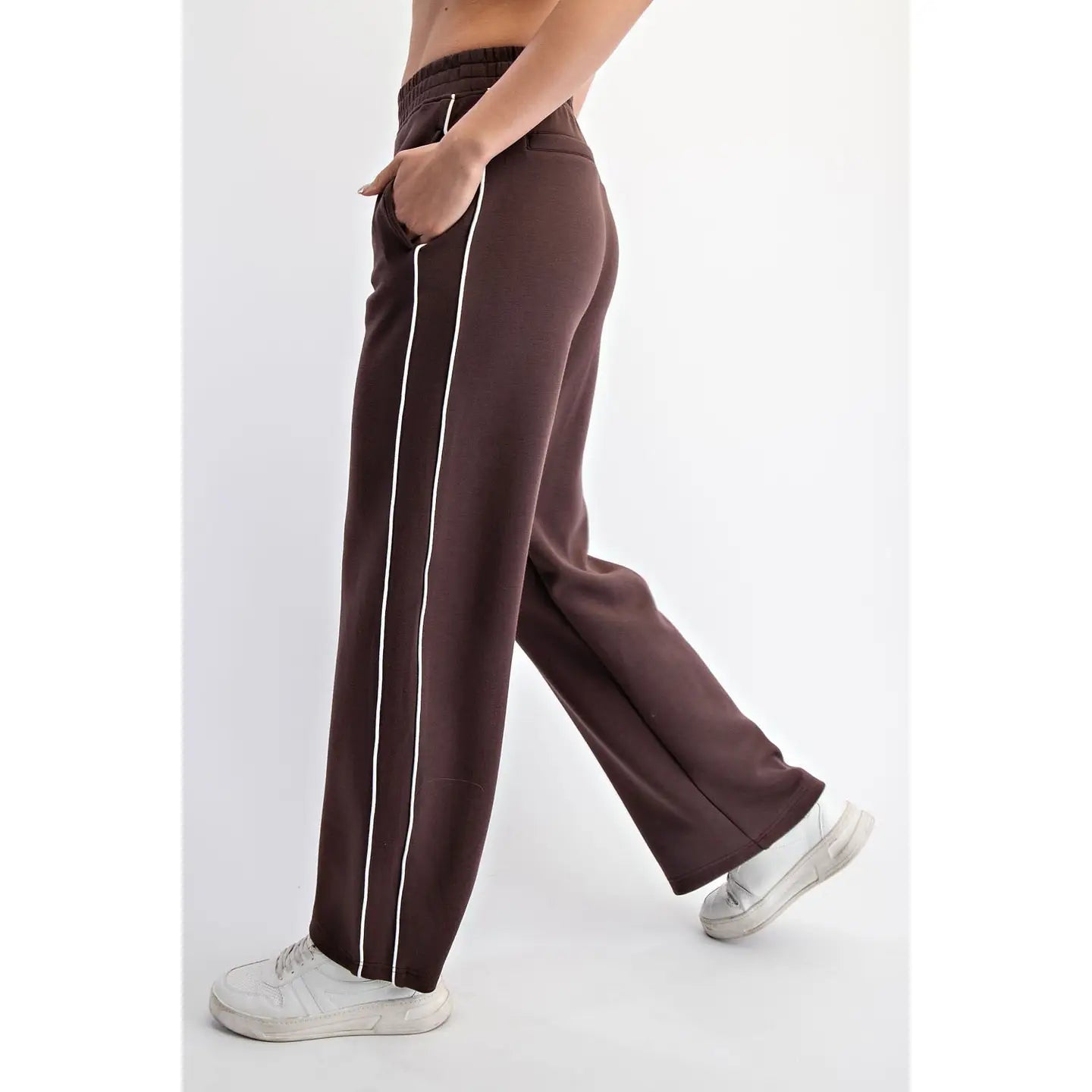 It's Love Modal Scuba Stripe Piping Pants in Espresso/Cream