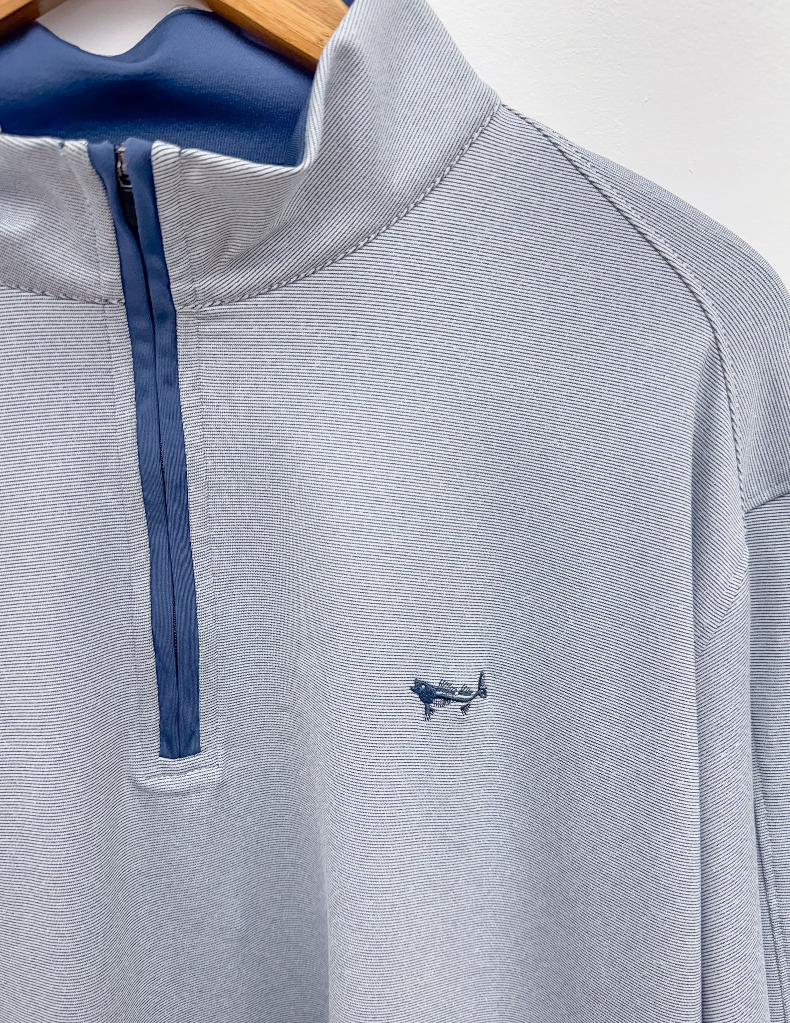 Coastal Cotton Performance Stripe Quarter Zip in Navy