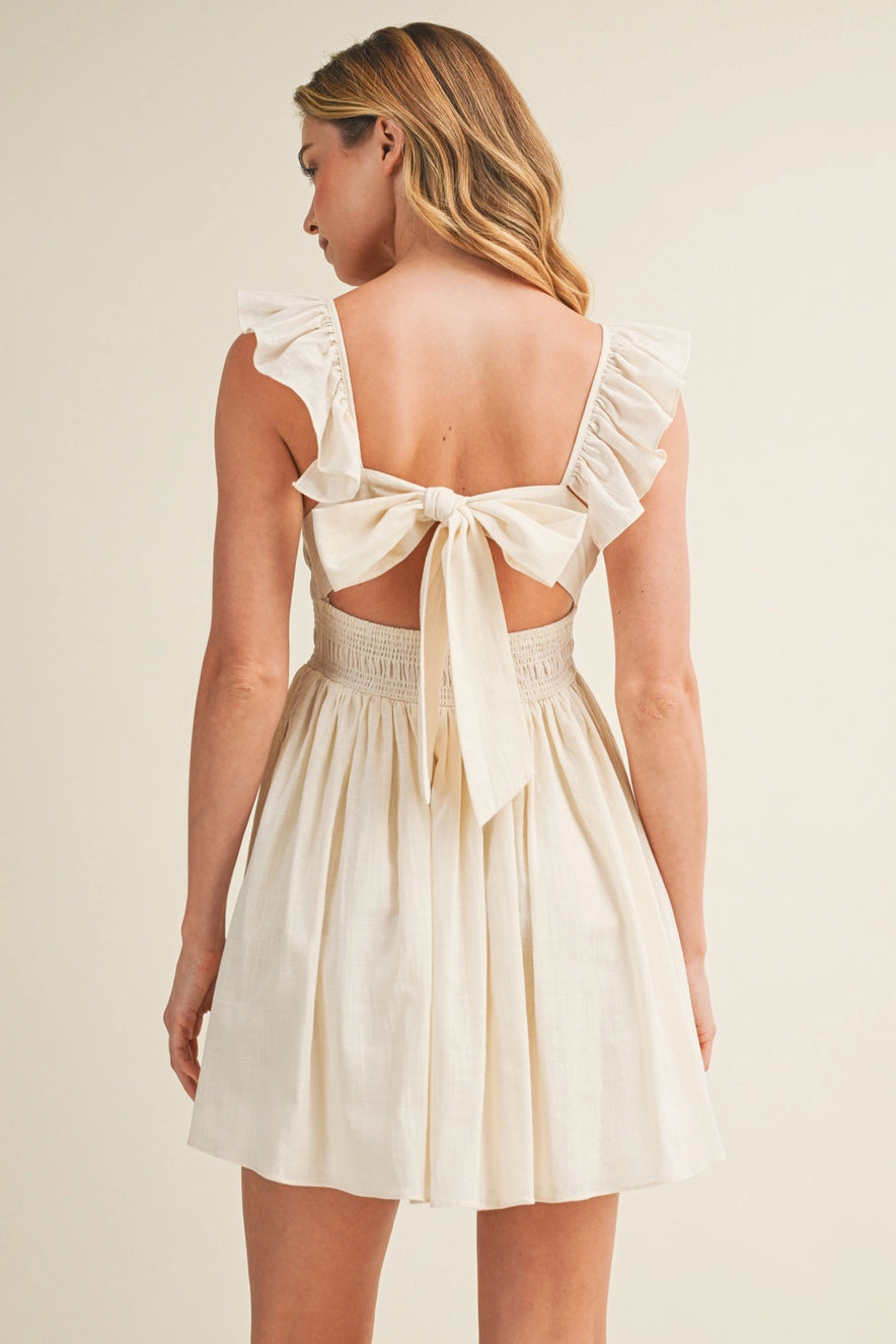 Product DetailsSQUARE NECK RUFFLED BACK-TIE DRESSadult female