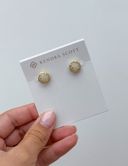 Kendra Scott Daphne Gold Frame Huggie Earrings in Iridescent Drusy