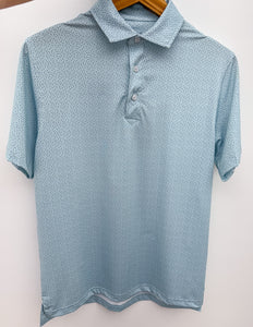 Southern Point Co. Horizon Stripe Performance Polo in Mallard Blue/White