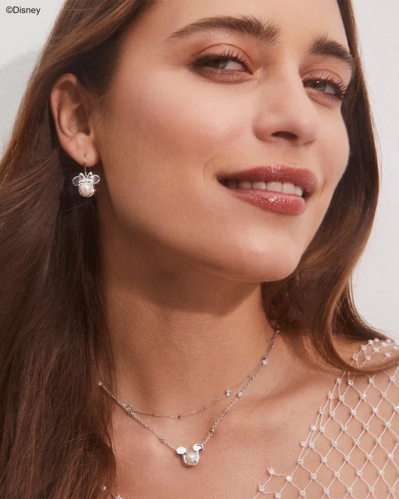 Experience the feeling of everyday magic with the Disney | Kendra Scott Silver Mickey Mouse Short Pendant Necklace in Freshwater Cultured Pearl. A signature KS pendant topped with Disney Mickey Mouse ears gets an extra dose of dazzle with a crystal-studded satellite chain. Timeless, iconic, and full of joy, this precious pendant will sprinkle a bit of extraordinary into your everyday looks.