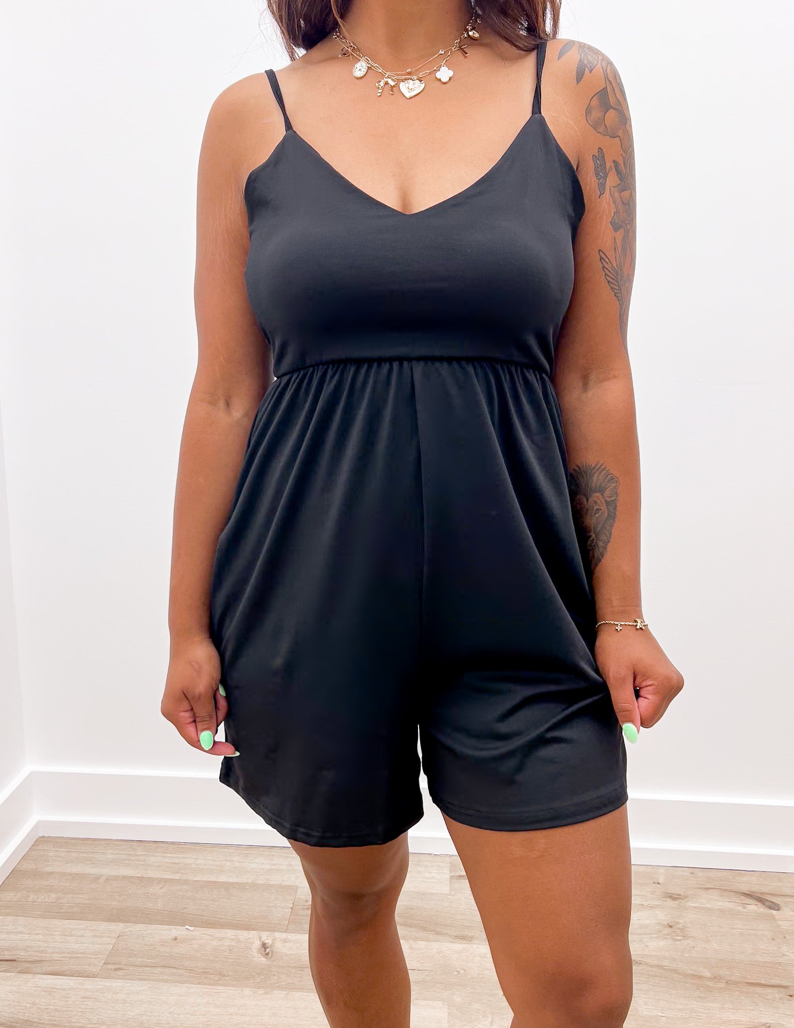 This Is Why Basic Loose Tennis Cami Romper in Black