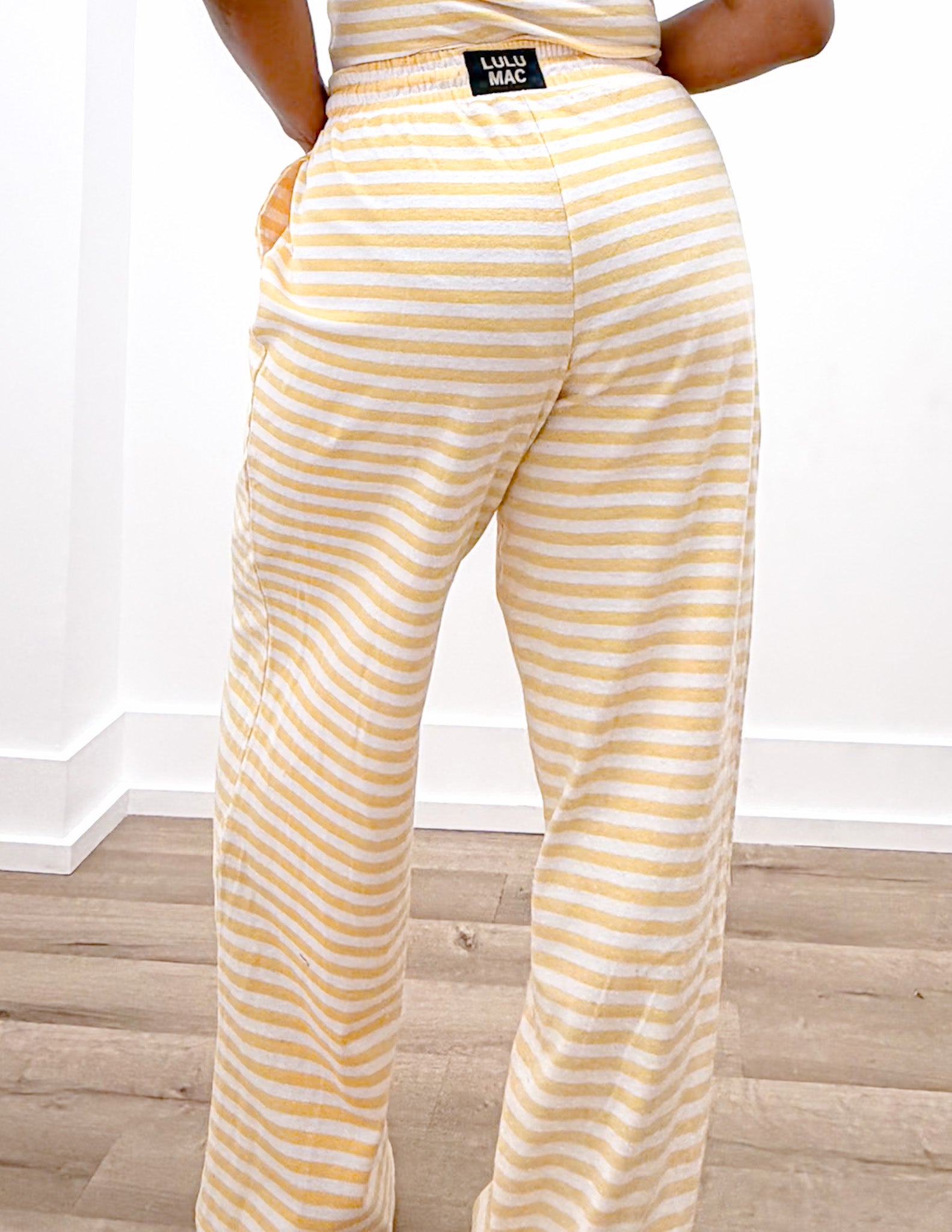 Step into cozy, colorful comfort with our Stripe Society Collection! Crafted from ultra-soft knit fabric, these pants offer a relaxed fit that’s perfect for lounging or casual outings. The ribbed waistband provides a tailored fit, while the drawstring lets you adjust to your ideal comfort level. Featuring practical side pockets (because who doesn’t love pockets?), these pants are as functional as they are stylish. Paired with the matching top, you’ll have a chic and comfy set that’s ready for any occasion.