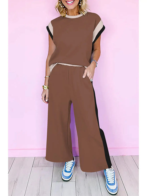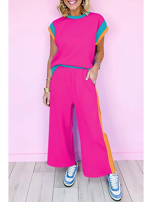 Crazy And Cute Colorblock Pullover And Pants Set in Strawberry Pink