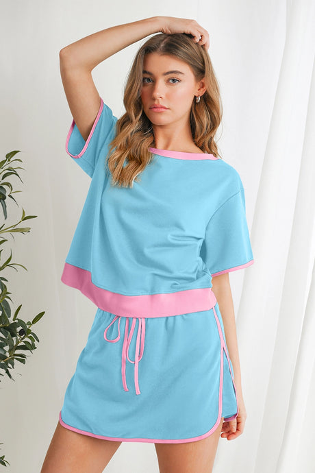 Asking About Me Tank and Lined Split Skirt Set in Blue