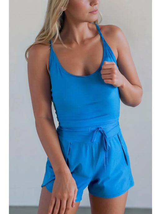 Living The Dream Tennis Romper Dress in Paradise Blue