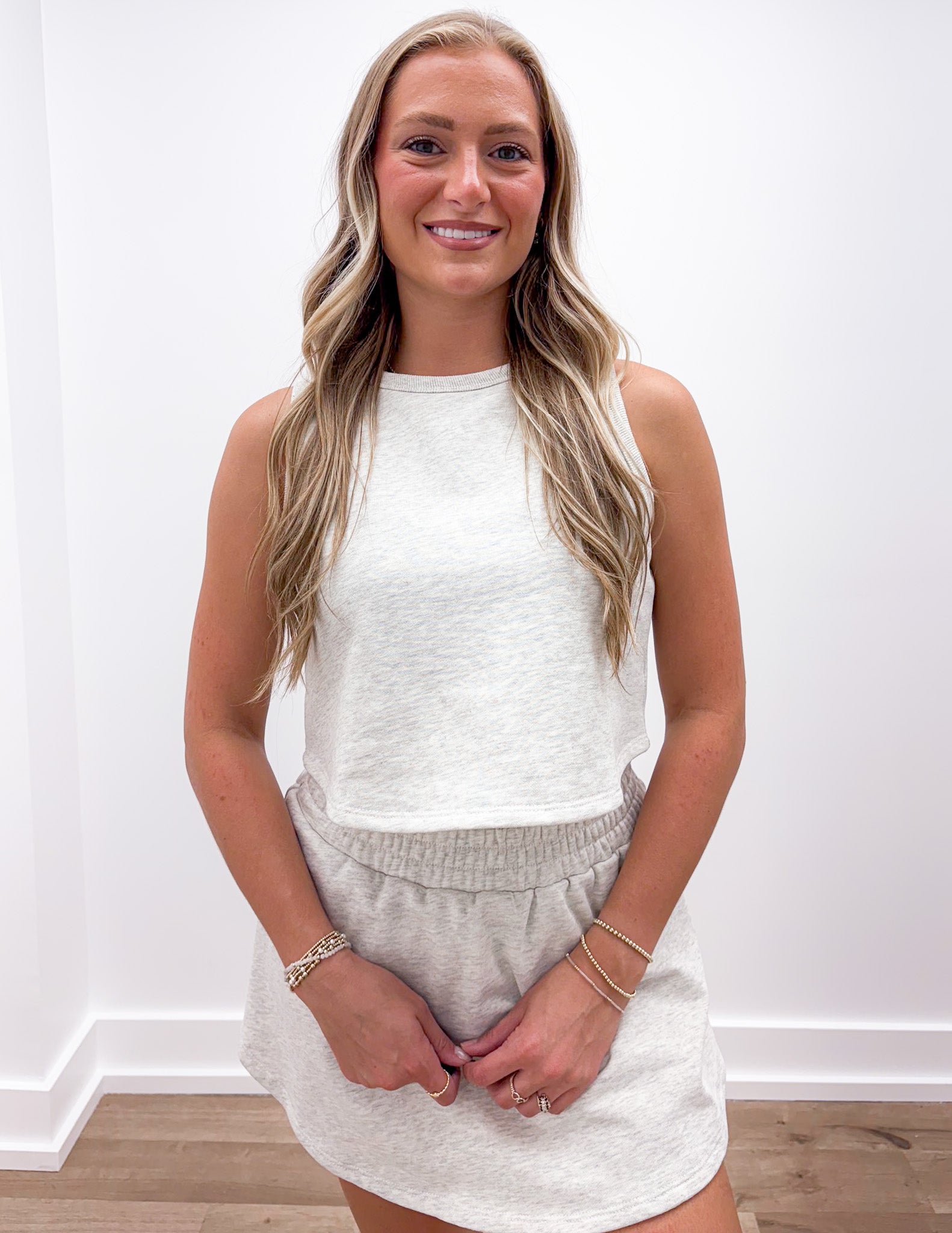 Come Alive Tank and Short Set in White Melange