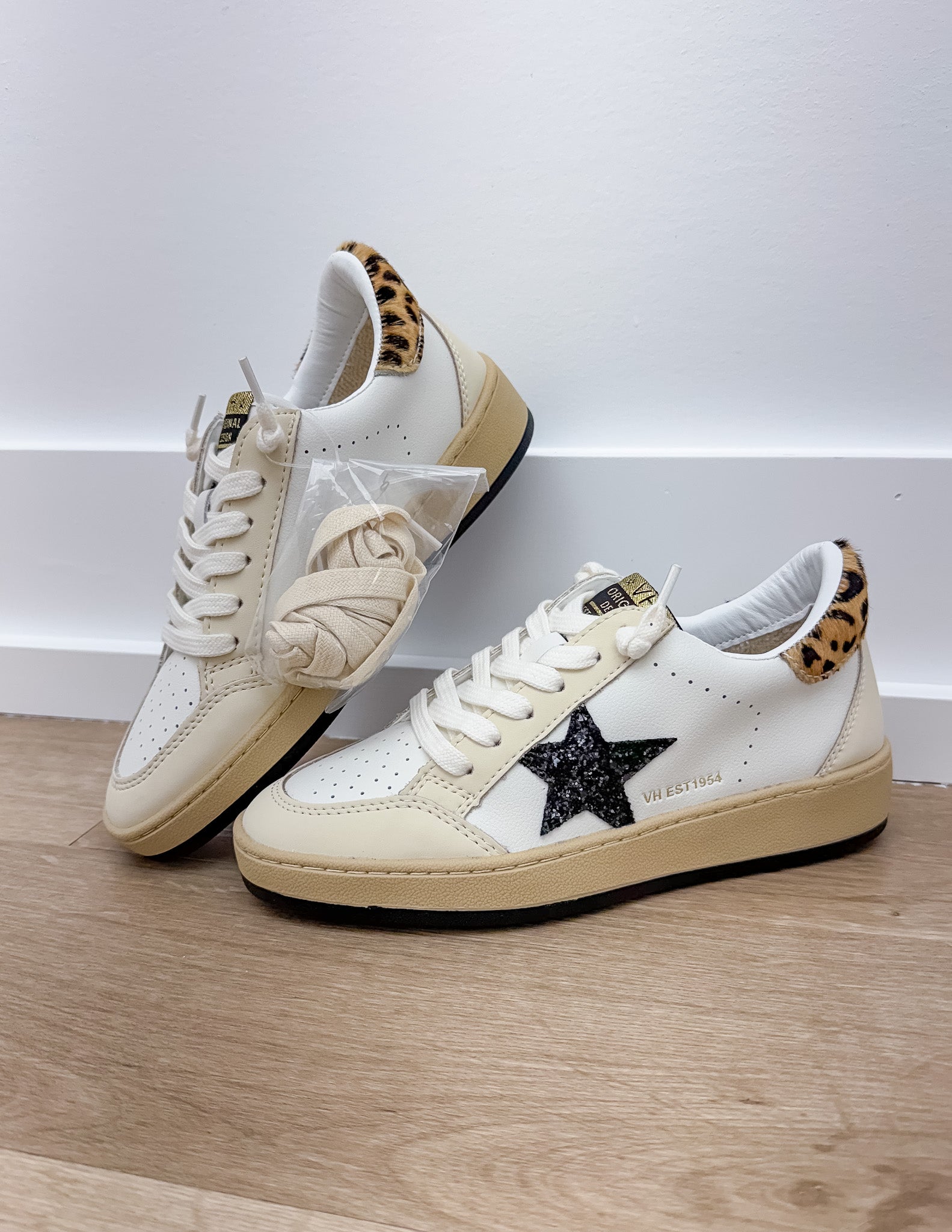 White Laced Black Star Cheetah Pop White Low Shoes