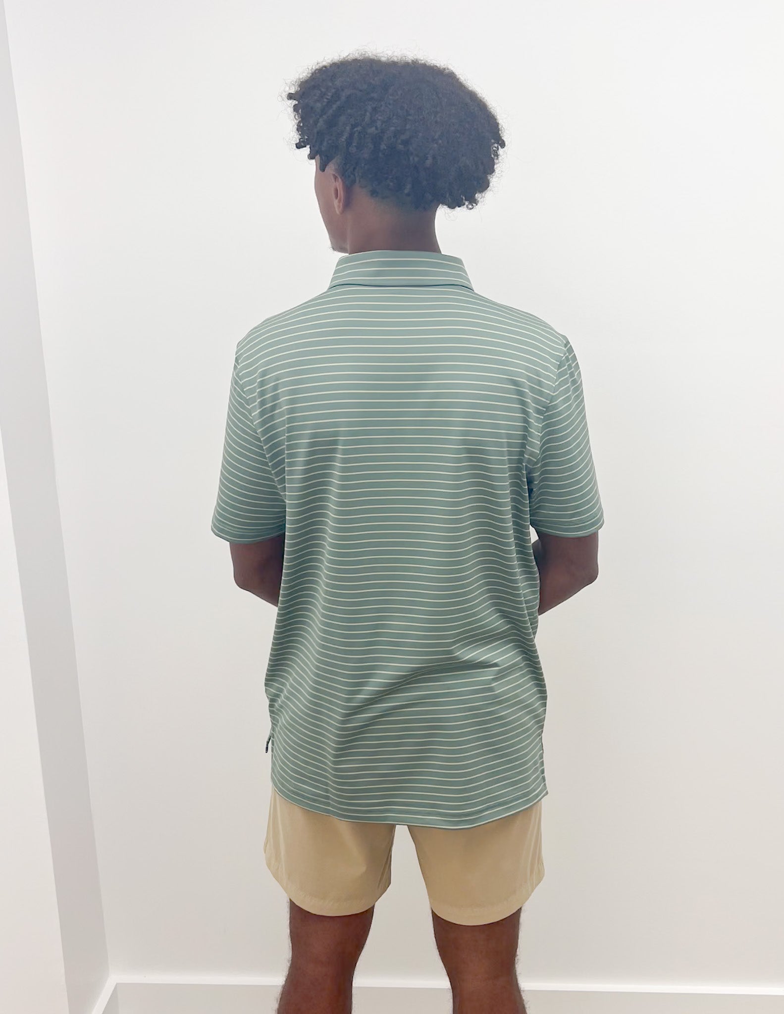 Southern Point Co. Horizon Stripe Performance Polo in Duck Green/Sandstone