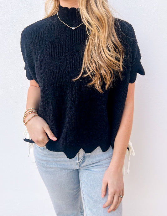 We Made It Ribbed Sweater Vest With Bow Detail