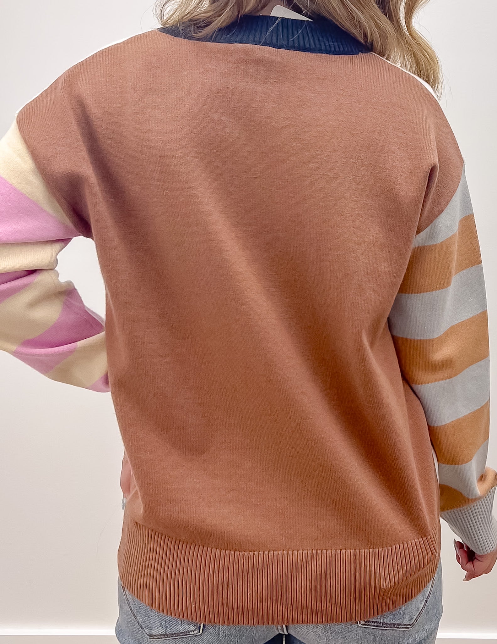 COLOR BLOCK STRIPE MIX SWEATER 30% POLYESTER 28% ACRYLIC 23% NYLON 19% VISCOSE