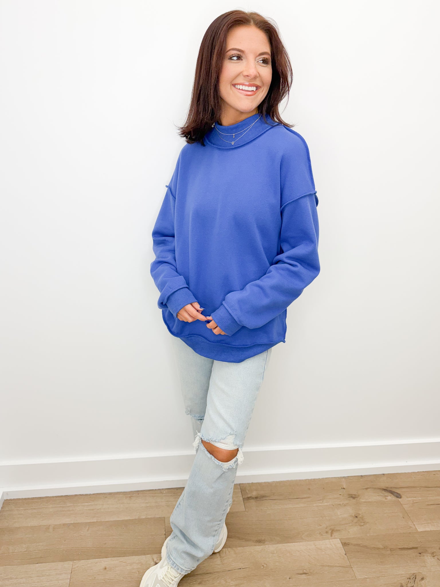 Always Says Goodbye Oversized Reversible Sweatshirt in Dark Blue