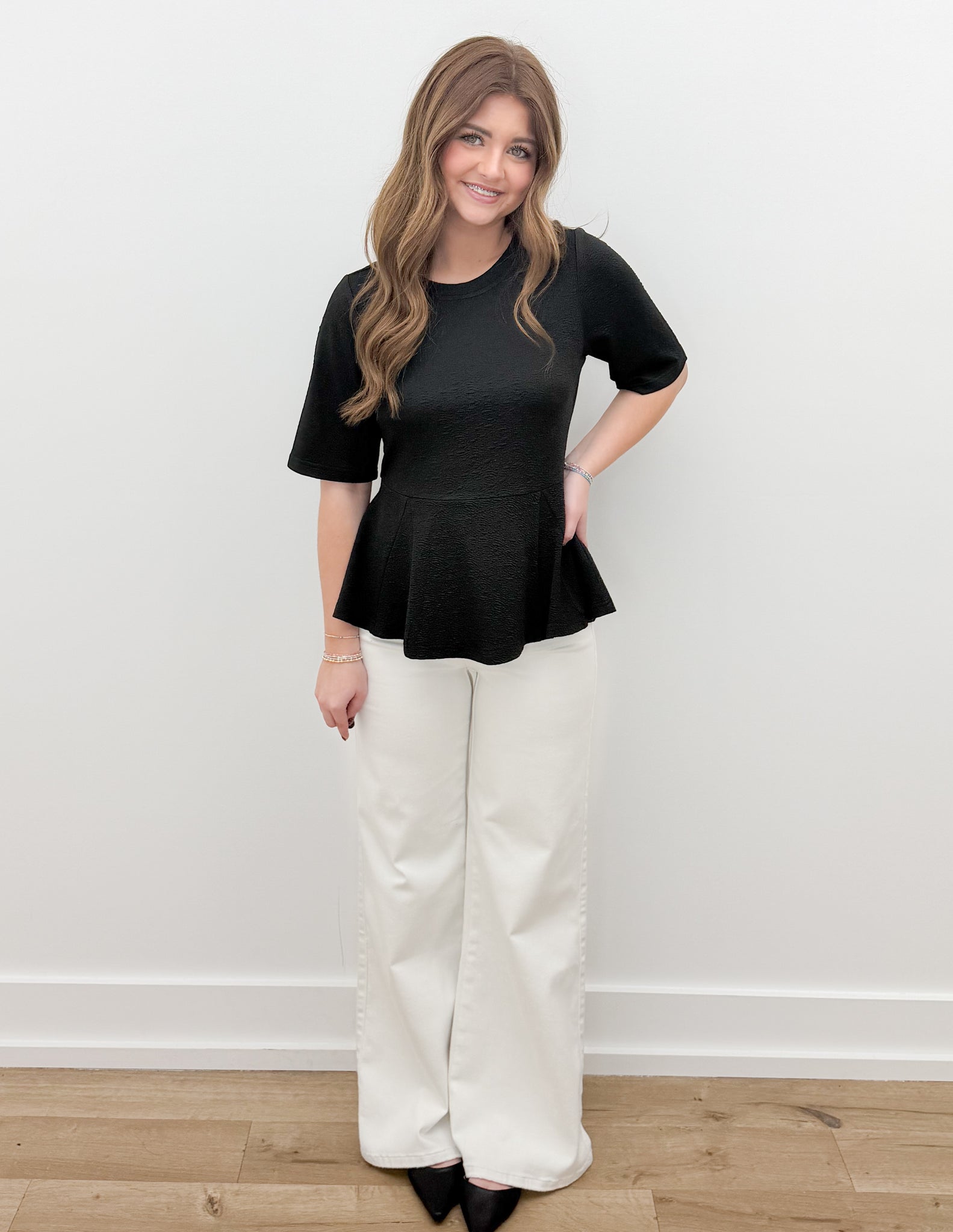• TEXTURE KNIT PEPLUM DESIGN TOP