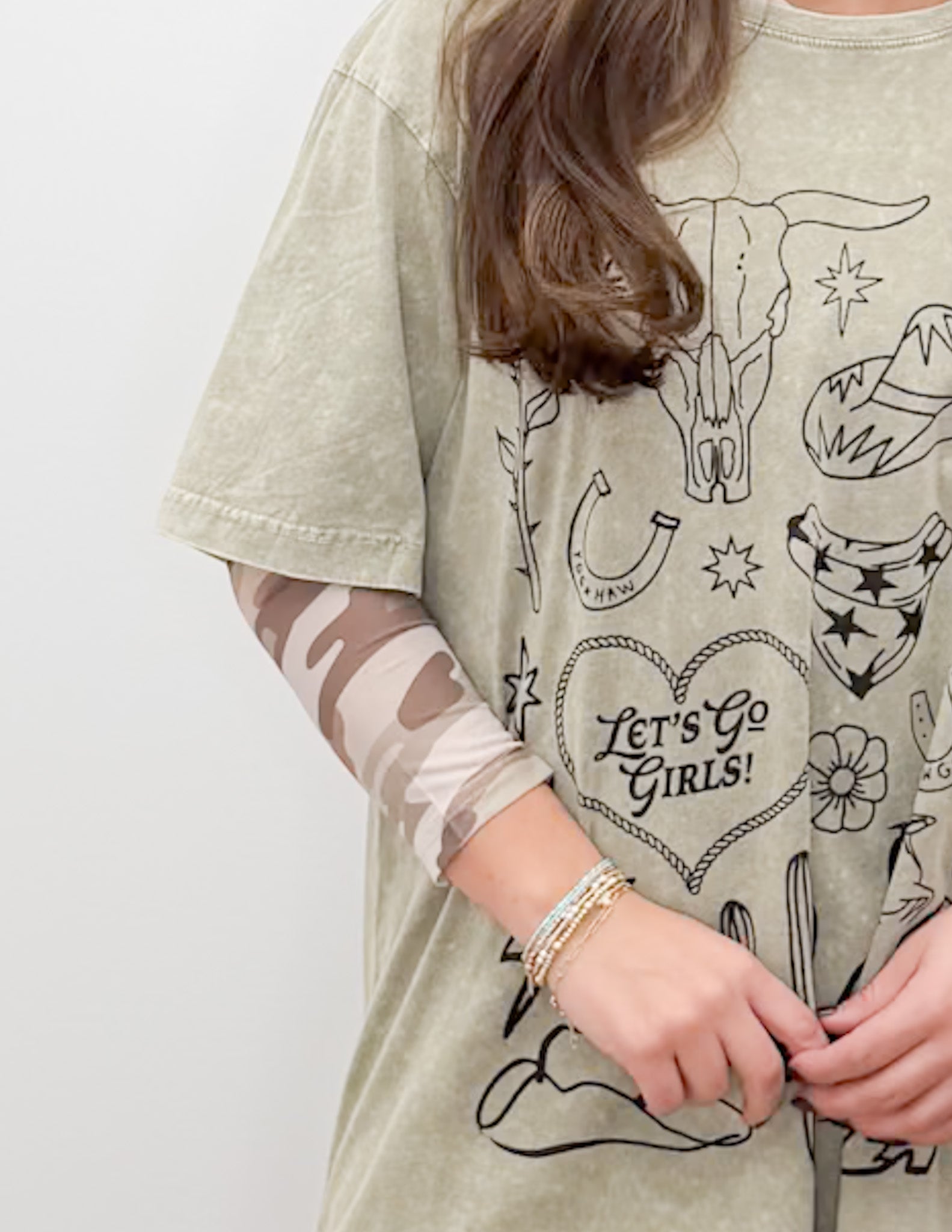 Fine knit fabric keeps this long sleeve top breathable & comfy.