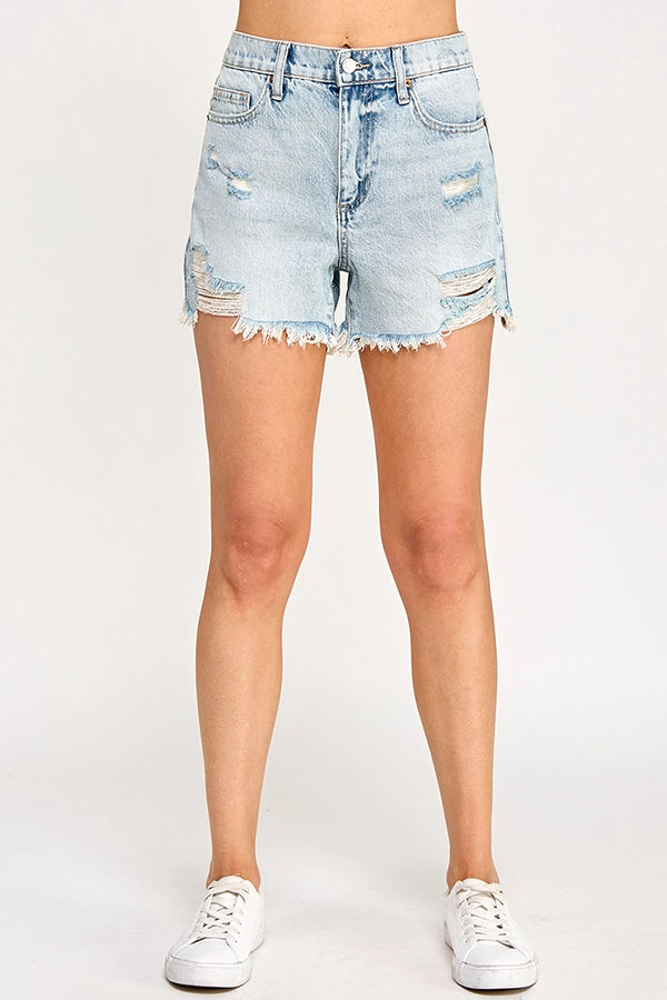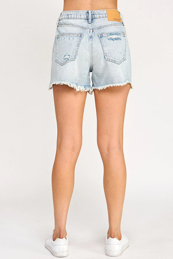 Laid-back with a lil' bit of attitude. These high-rise tomboy shorts are cut in a relaxed fit and finished in a soft light wash with distressed details that bring the edge. They're the kind of denim you'll keep reaching for, whether you're styling them with a tee or dressing them up with a blazer. Easy to wear and easier to love.