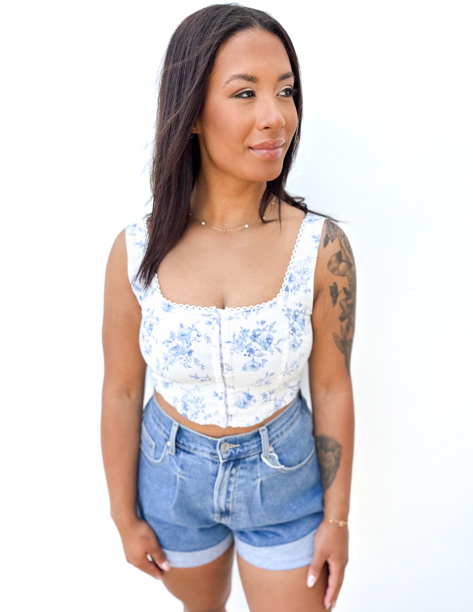 Funky Floral Sleeveless Crop Top in Blue Multi