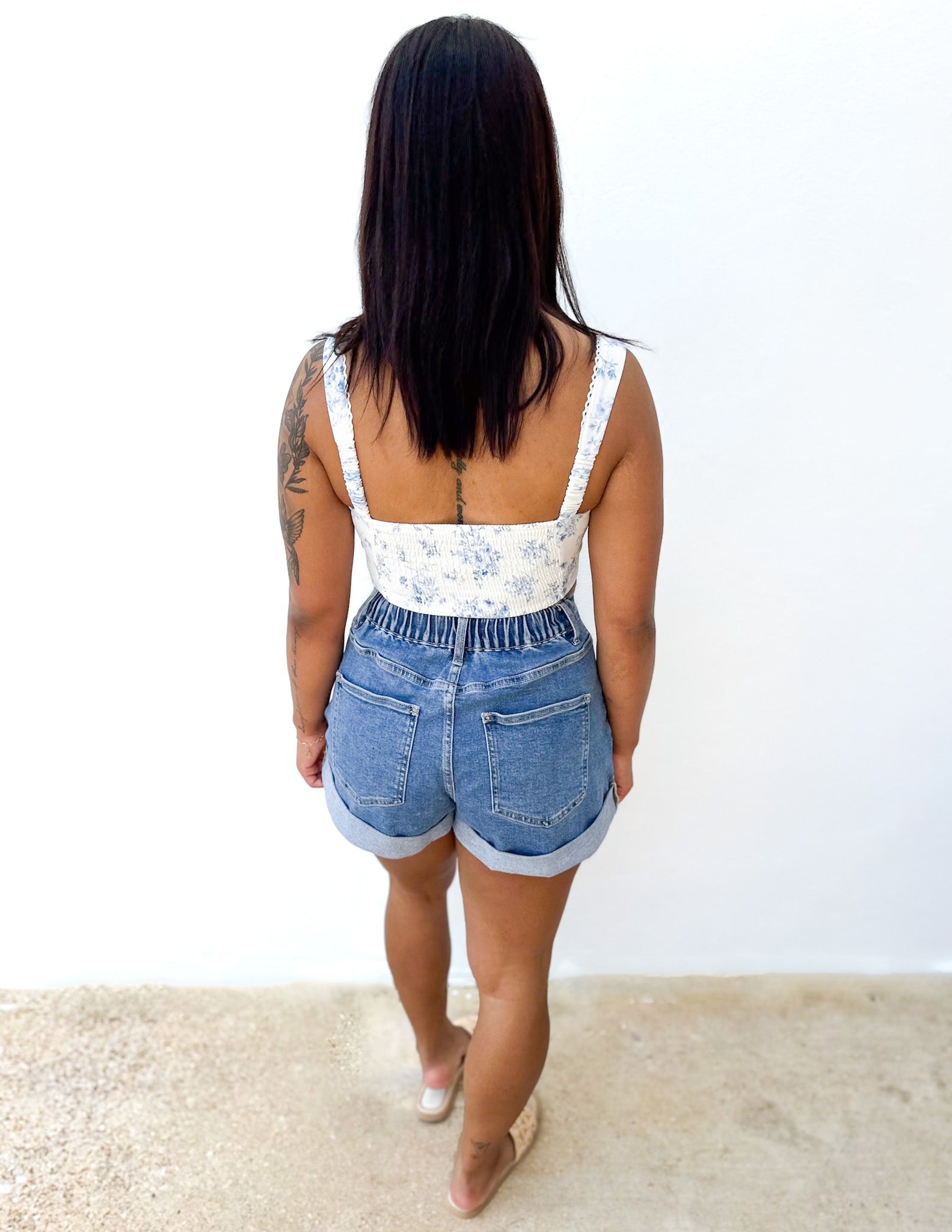 SCOOP NECKLINE SLEEVELESS ELASTIC STRAP FRONT HOOK & EYE CLOSURE SCALLOP TRIM DETAIL BACK SMOCKING LINED WOVEN TOP 100% POLYESTER adult female