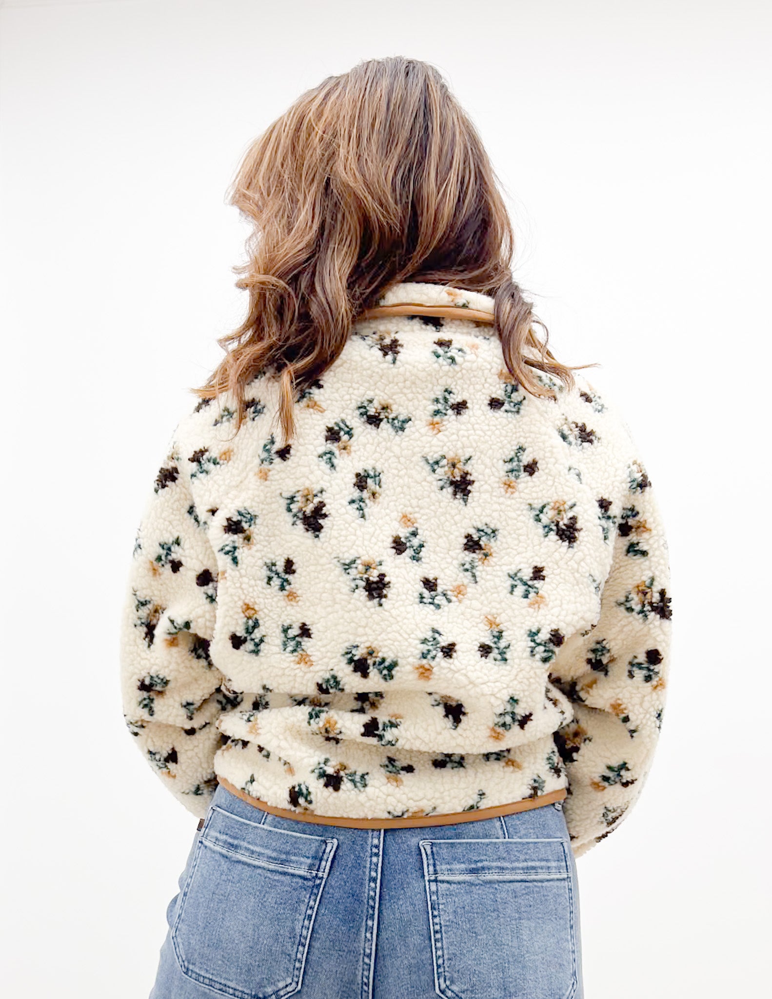 Remember Me Floral Print Fleece Jacket in Cream/Khaki