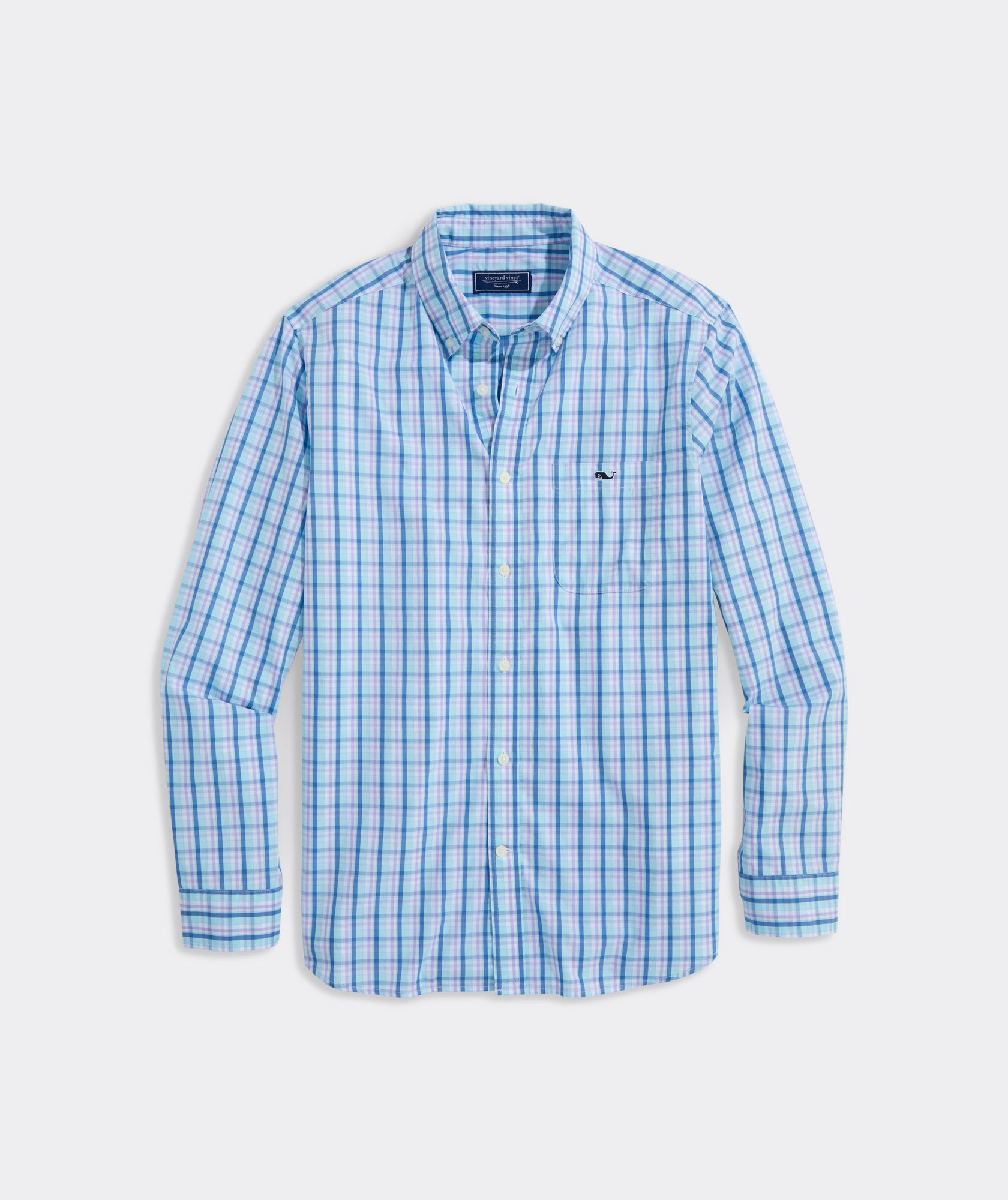 Vineyard Vines Sandie Plaid Perfect Wash Poplin Dress Shirt in Sea Splash
