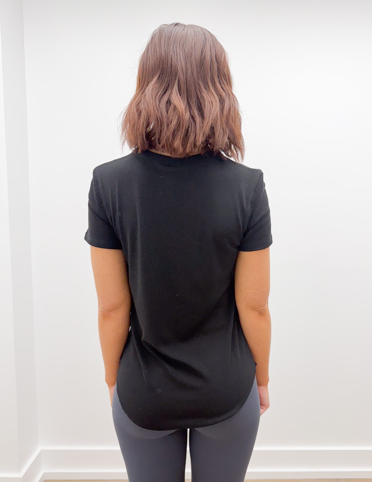 Just Your Basic Ribbed Knit T-Shirt in Black
