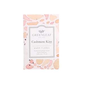 Enjoy your favorite Greenleaf fragrance everywhere you go with our small sachets. Place a few in your closets, under the seats in your car, under your sink, or anywhere else you'd like a touch of fragrance. Cashmere kiss is bound by passion and romance. Stirring citrus accords tenderly fold into fields of jasmine and rose. A rich finish of vanilla, patchouli and musk seal the fragrance with a kiss of elegance.