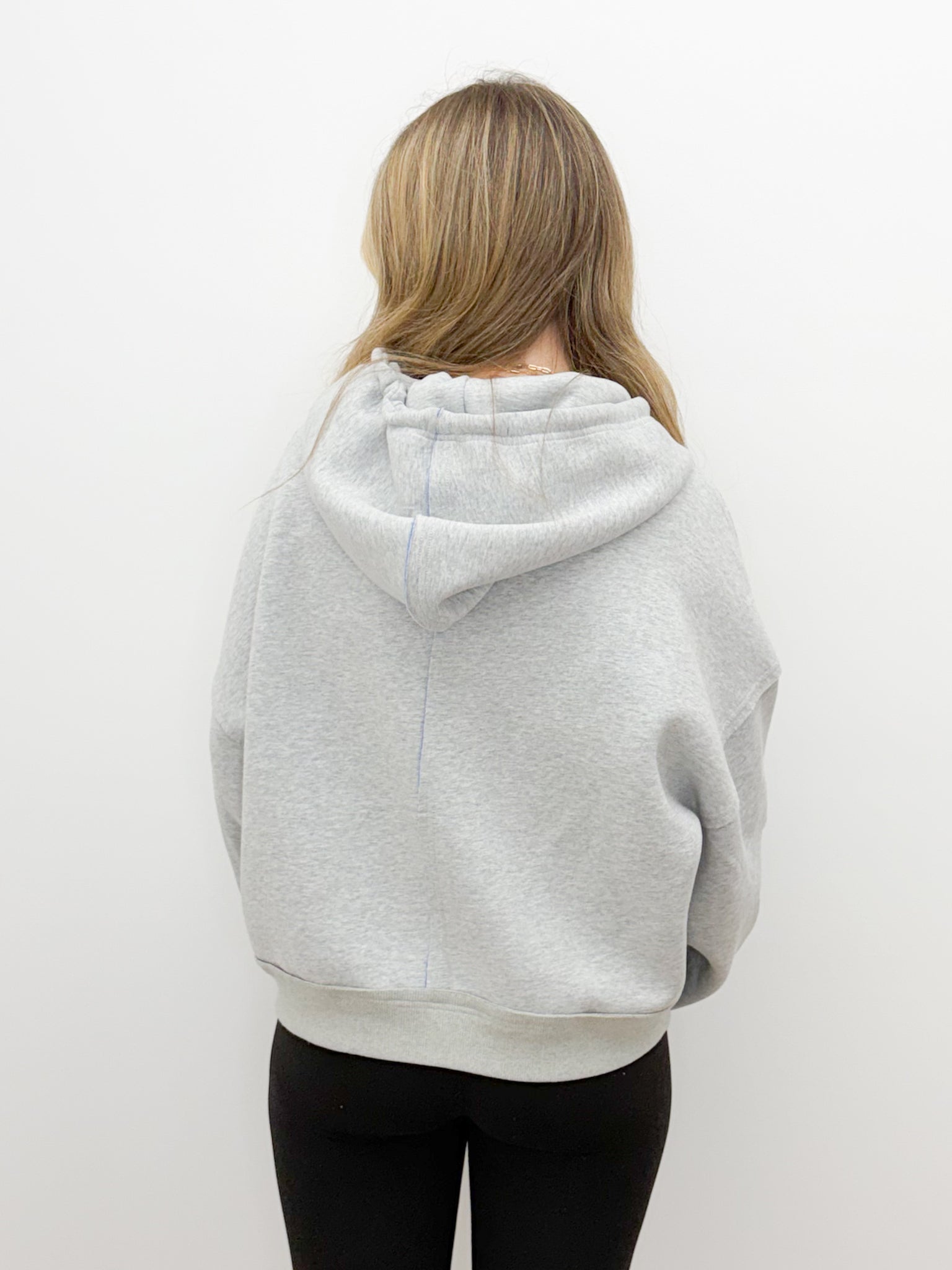 Contrast Seaming Hooded Zip-Up - Hooded-neckline with drawstrings - Front-zip closure - Drop-shoulder long sleeves - Ribbed cuffs and hem - Contrast seaming - Structured fit - Hip-length style - Pockets at front