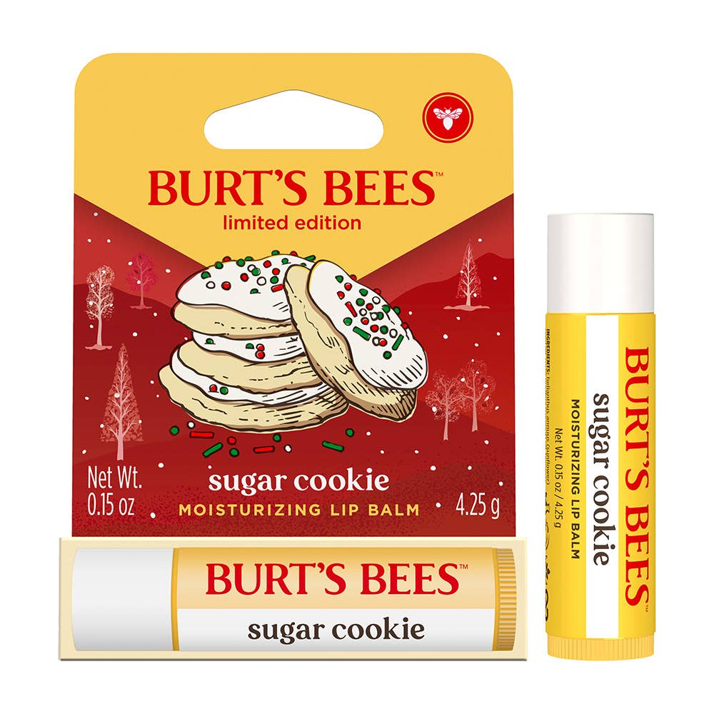 Enjoy the sweet, buttery flavor of Burt’s Bees Sugar Cookie Moisturizing Lip Balm as it conditions and hydrates lips. This limited edition, tint free lip balm glides on smoothly with responsibly sourced beeswax to moisturize dry lips and keep them hydrated for up to 24 hours.
