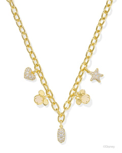 Make your look totally charming with the Disney | Kendra Scott Gold Mickey Mouse and Minnie Mouse Charm Necklace in Iridescent White Mix. This necklace features a mix of charms, including Disney’s eternal sweethearts and some of our most iconic Kendra Scott shapes. With its bold chain and top-notch sparkle, this one is a total must-have.
