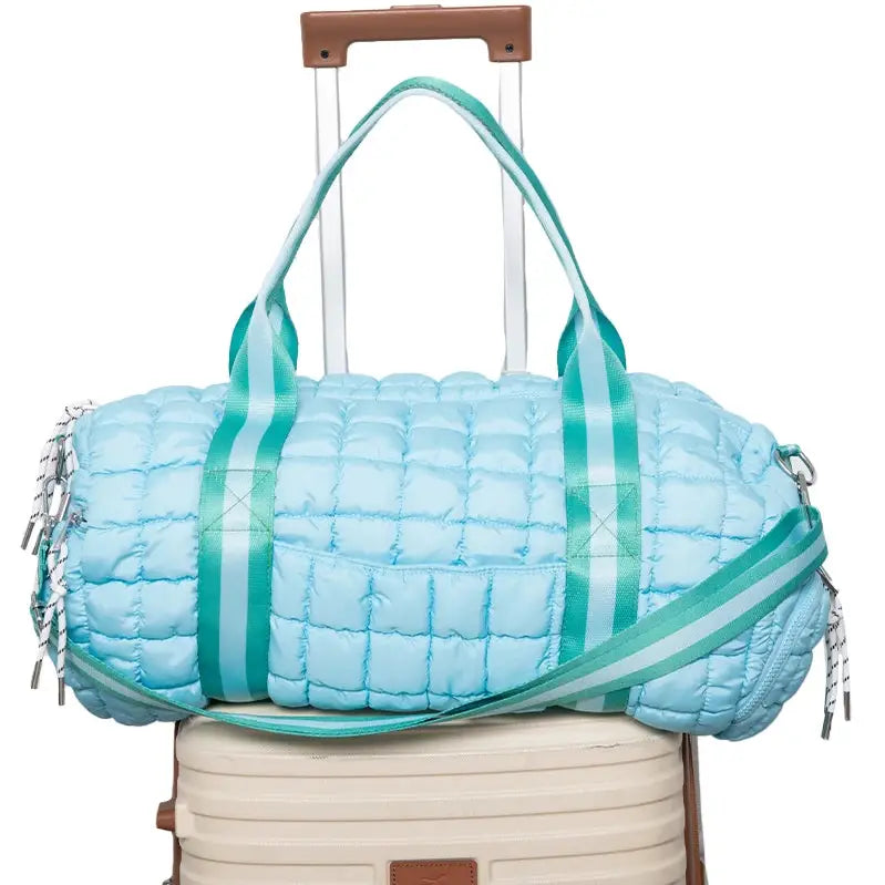 Light Blue Striped Quilted Duffle Bag