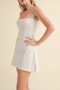 built-in bra, spaghetti straps, short liners, and four-way stretch