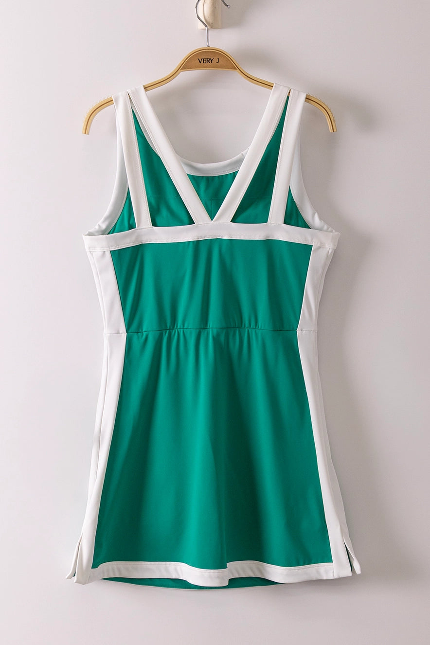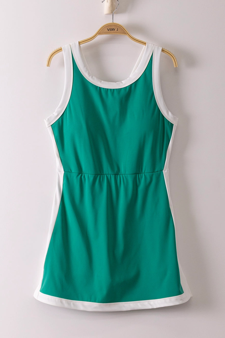 - Color Block Activewear Mini Dress W/ Bra Cap - Shorts Inside - Sleeveless - Round Neck - Atheisure Wearadult female