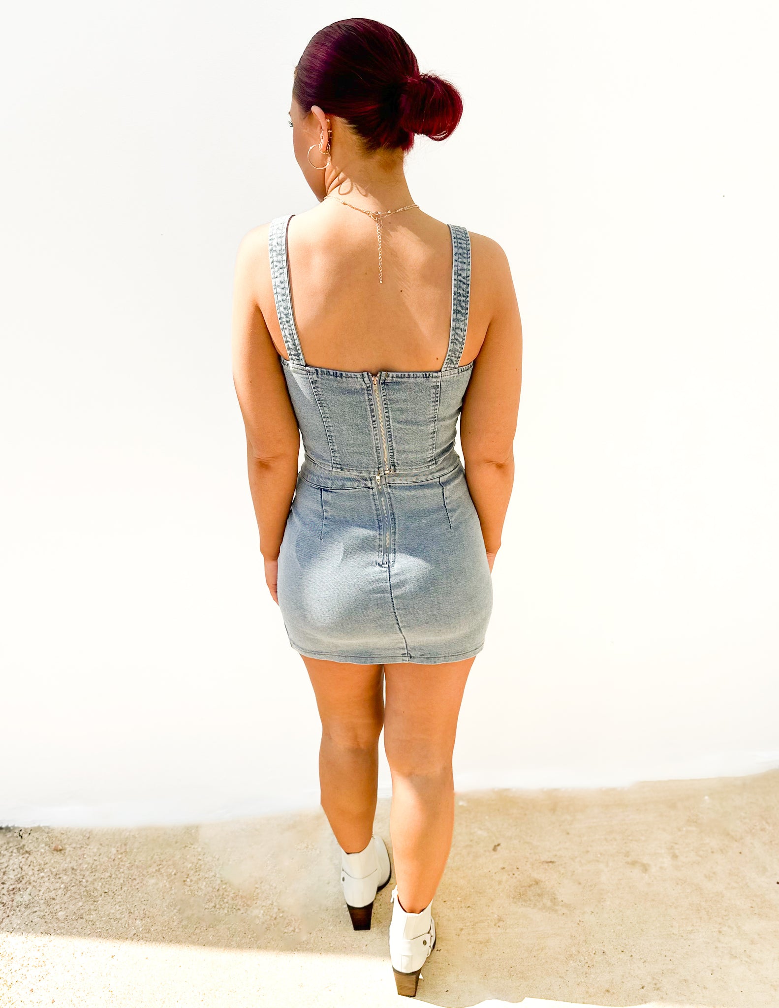 Denim Mini Skirt With Slit and Ribbon Bow Trim Detail